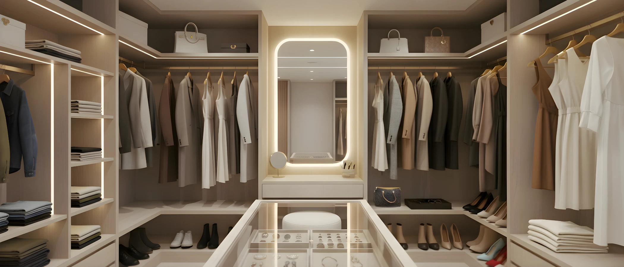 Dein Spiegelraum ist mehr als nur ein Schrank – er ist die Bühne für deinen Auftritt. Hier entscheidest du jeden Morgen, wer du heute sein möchtest. Es ist ein Ort der absoluten Klarheit, an dem Chaos keinen Platz hat und an dem deine Garderobe die Wertschätzung erfährt, die sie verdient.